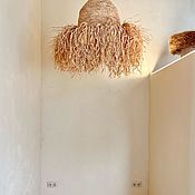 Абажур пушистый из рафии натуральной, люстра из рафии. Светильник в