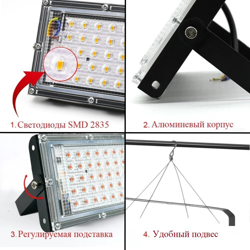 Светильник для растений 50 ватт, (фитолампа), полный спектр; 50 диодов