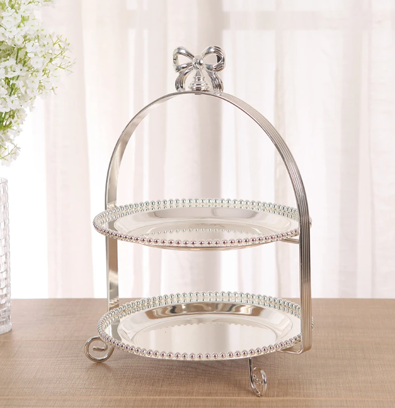 Высокая-класс 2/3 слоя десерт поднос с серебряным покрытием круглая