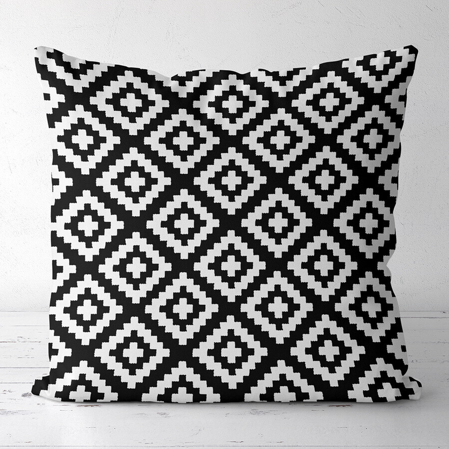 Подушка з принтом 50х50 см Білі геометричні ромби на чорному тлі