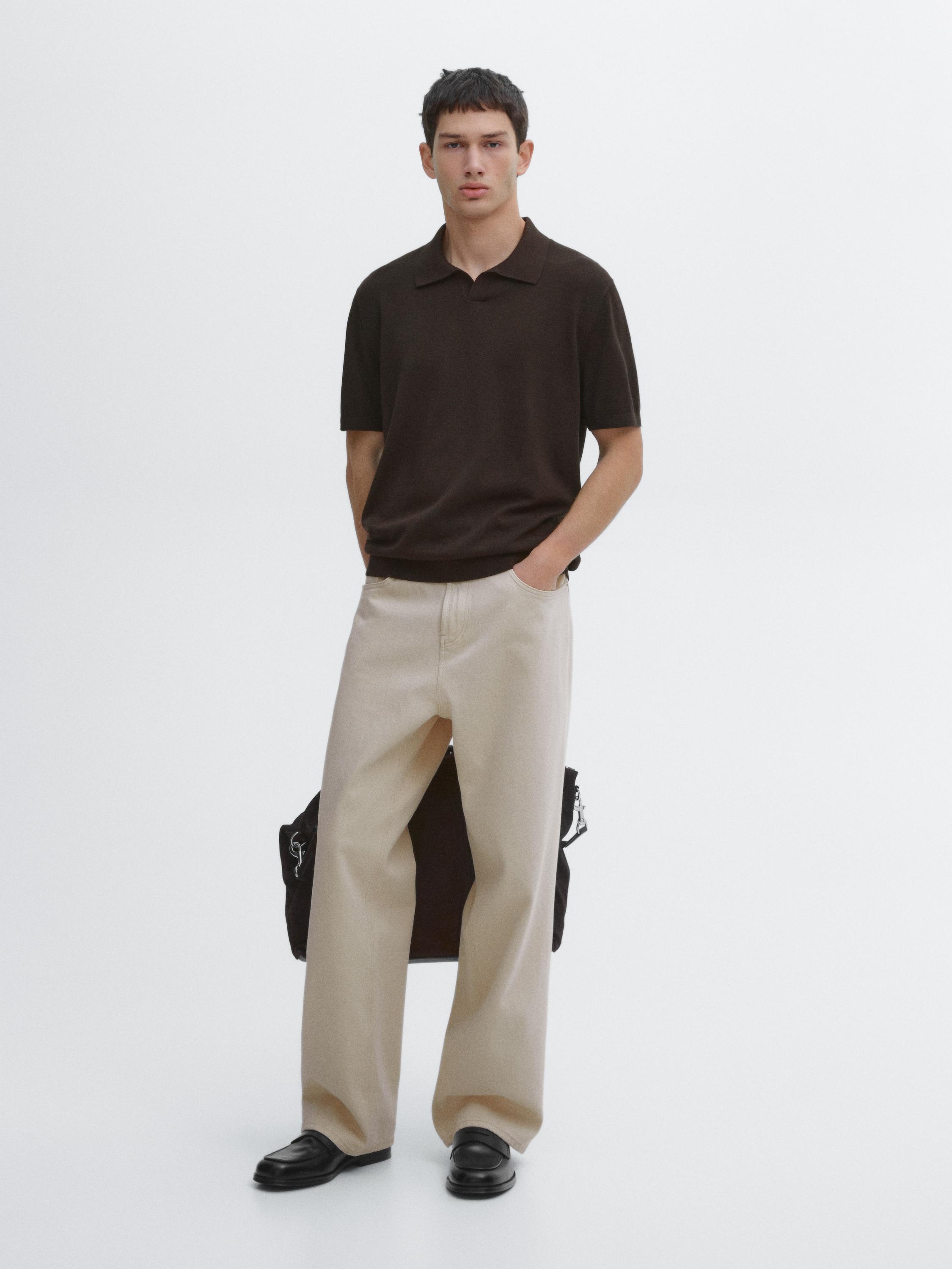 Свитер поло с V-образным вырезом и короткими рукавами · Коричневый