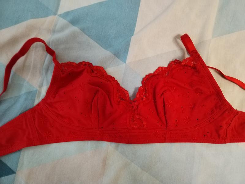 Бюстгальтер с треугольными чашечками без косточек из кружева розовый