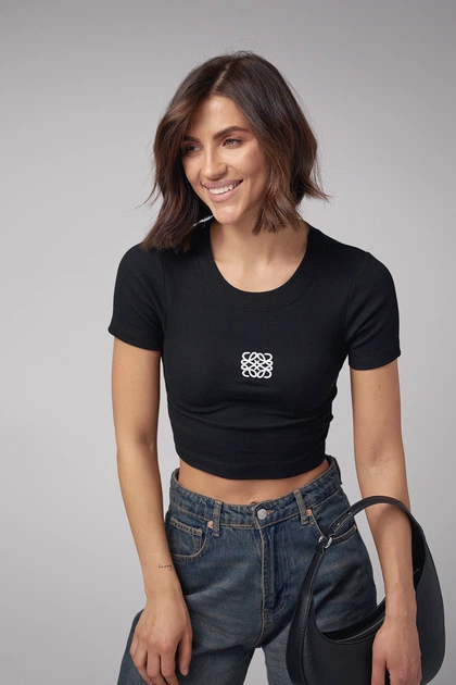 Короткая футболка в рубчик с вышивкой Lurex черный S (black-231029