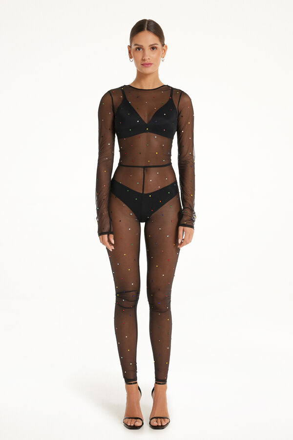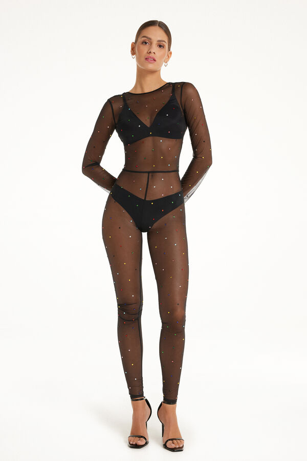 Длинный Комбинезон Limited Edition из Тюля с Цветными Стразами