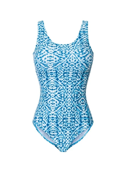 Жіночий купальник закритий абстракція синій 42