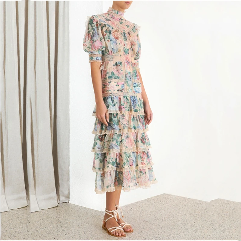 Летнее высококачественное платье миди с цветочным принтом и коротким