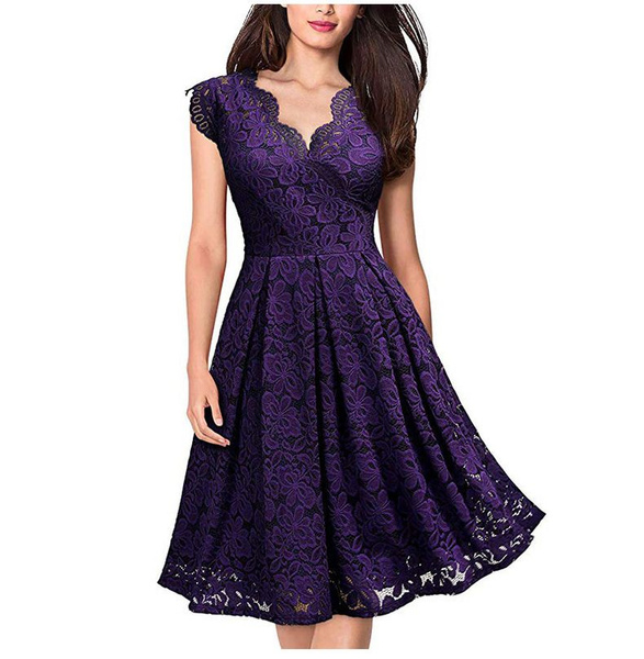 Платье с короткими рукавами и кружевным V-образным вырезом,46