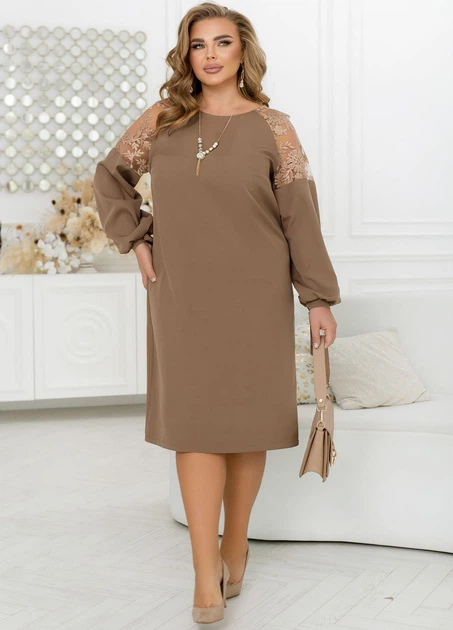 Платье с кружевами 602335 Бежевый 66-68