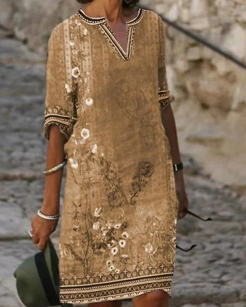 Женское летнее платье с V-образным вырезом и цветочным принтом