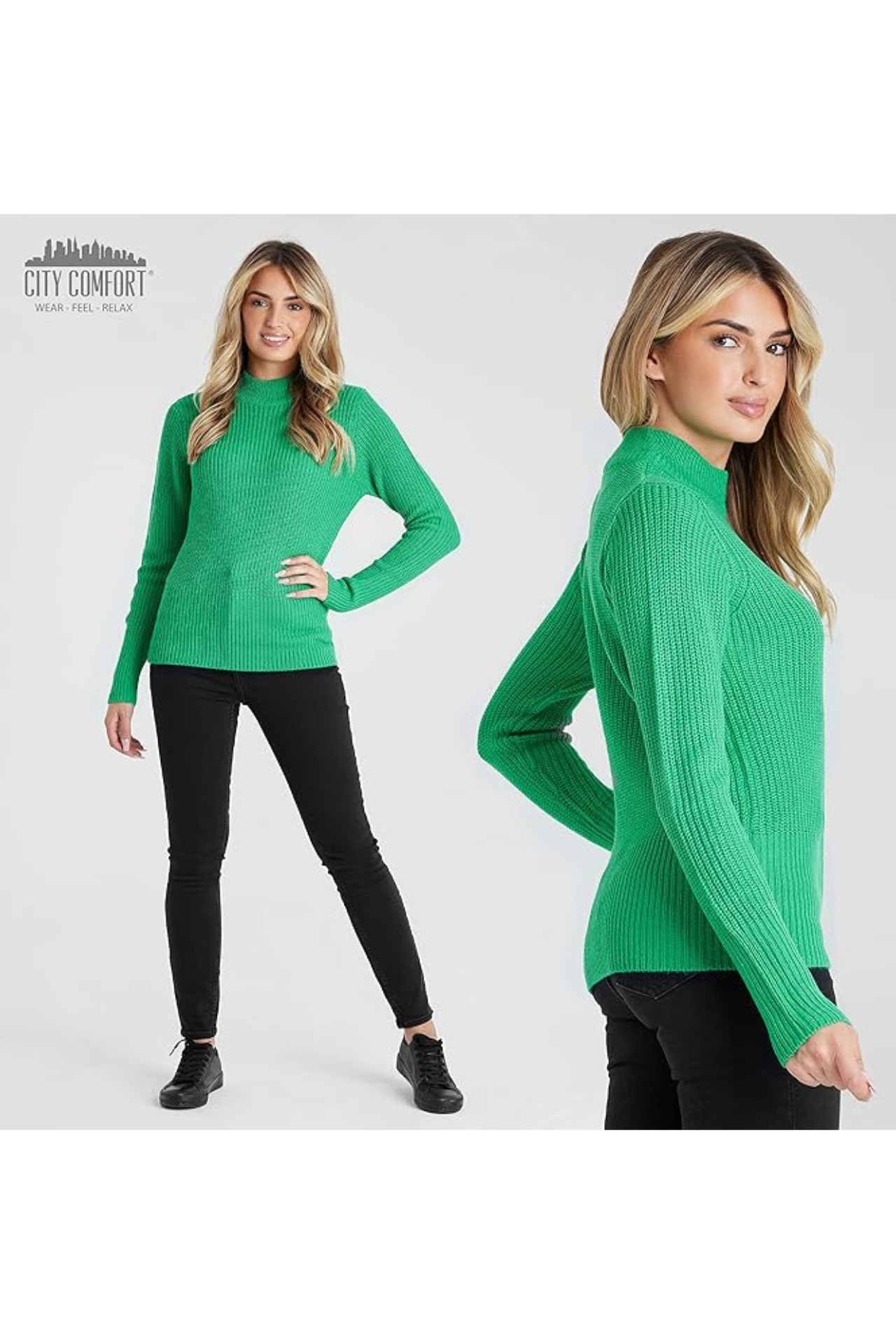Дамски пуловер с акрилна яка с дълъг ръкав Модерен удобен топъл фин