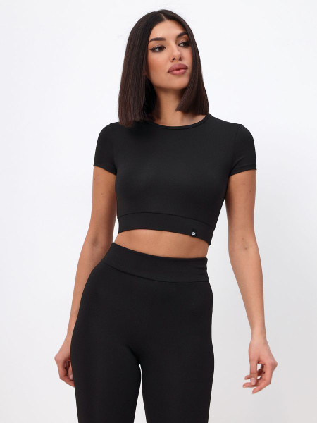 Топ спортивний на широкому манжеті з відкритою спиною, чорний